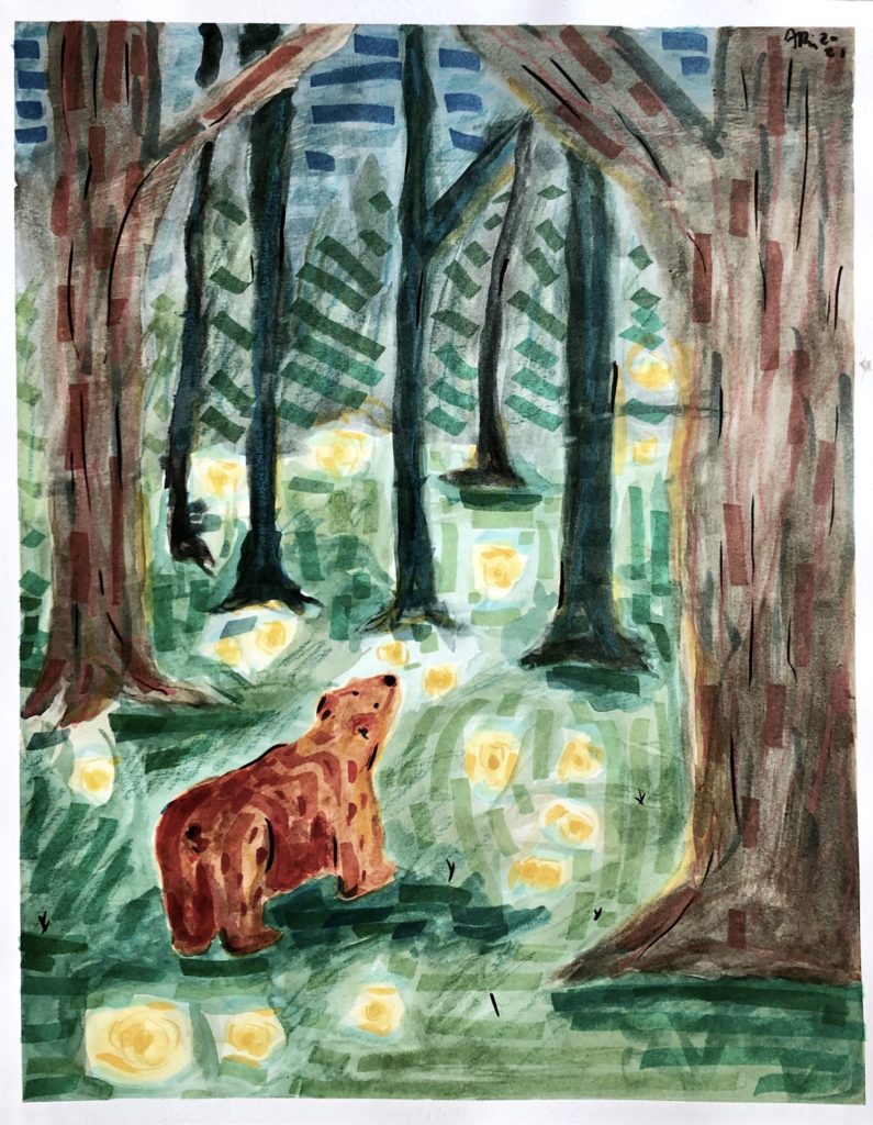 April 12, 2021 Anna April 12, 2021 April 12, 2021 Art Bear and fireflies watercolor. Hard to get an accurate picture of it.